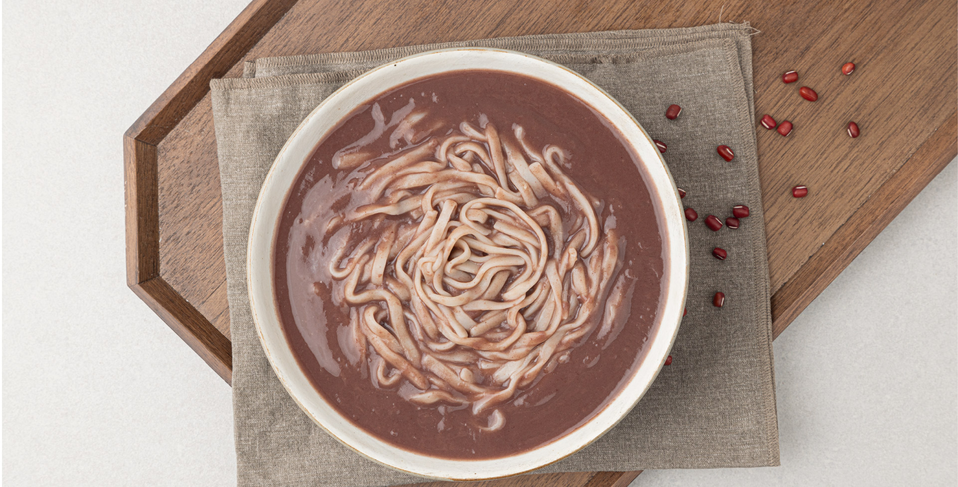 구수한 팥과 쫄깃한 칼국수의 완벽한 조화를 담았습니다. 따뜻한 어머니의 손맛을 담아 추억과 감동을 함께 느껴보세요.