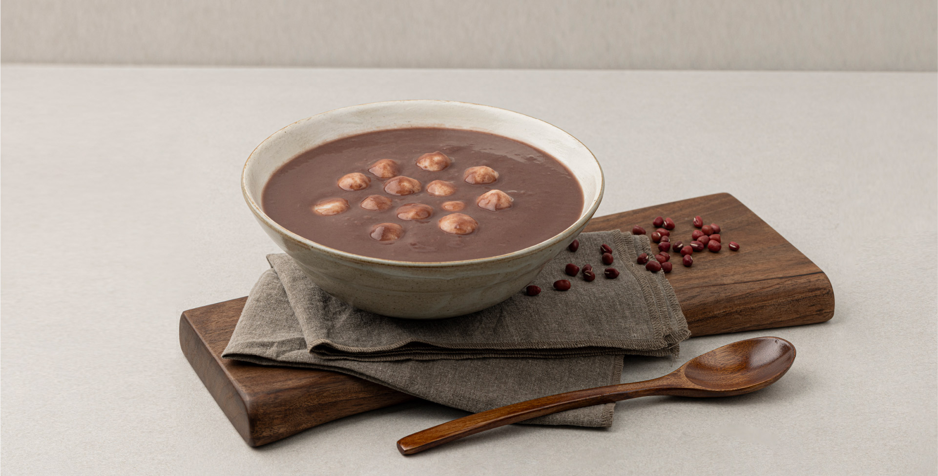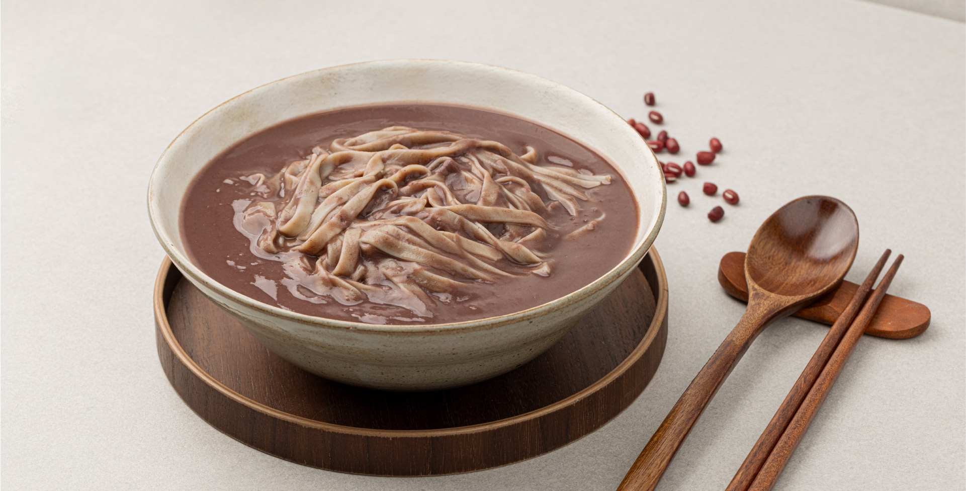 100% 국내산 메밀로 만든 쫄깃한식감의 메밀면과 깊고 담백한 팥물의 환상적인 조합. 메밀면 팥칼국수의 풍미를 경험해보세요.