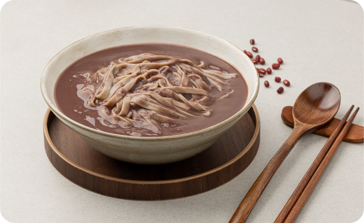 구수한 팥과 쫄깃한 칼국수의 완벽한 조화를 담았습니다. 따뜻한 어머니의 손맛을 담아 추억과 감동을 함께 느껴보세요.