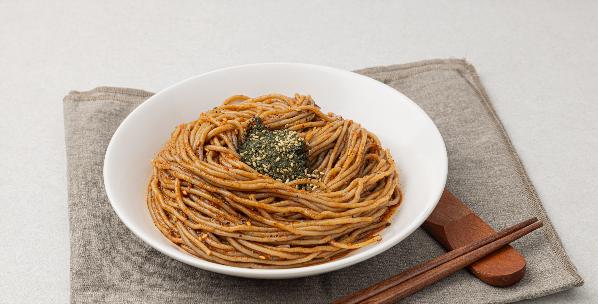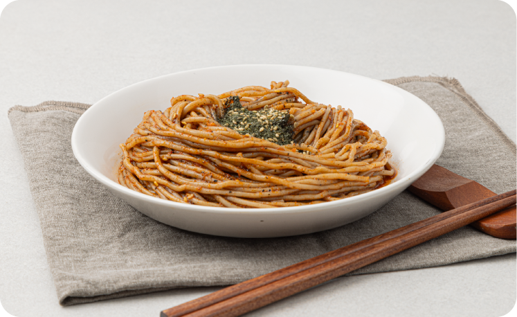 메밀 제품은 100% 국내산 메밀을 사용하여 제조하며 메밀의 고유의 풍미와 양념의 맛이 조화롭습니다.